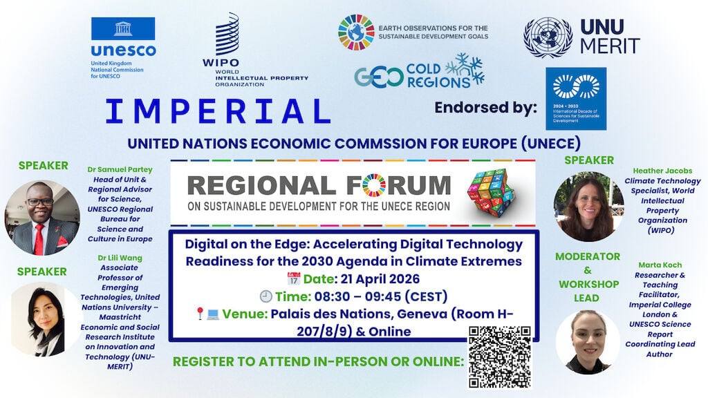 The event will also officially launch a novel Sustainable Digital Technology Readiness Asset-Mapping Framework developed by researchers at Imperial College London and supported by the United Nations, UK Natural Environment Research Council and Foreign, Commonwealth & Development Office / Department for Science, Innovation and Technology ‘Science & Technology Network’. The Framework will be demonstrated through expert insights and an interactive mapping workshop with attendees.