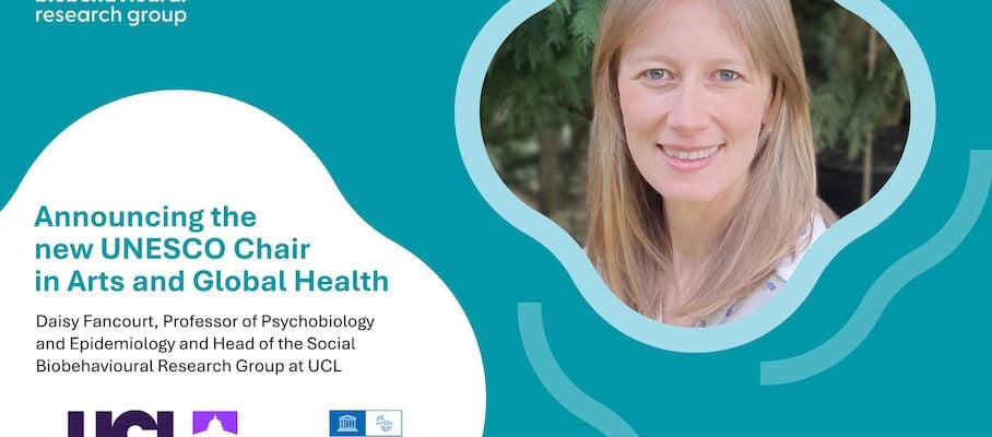 Daisy Fancourt, Professor of Psychobiology and Epidemiology and Head of the Social Biobehavioural Research Group at UCL, has been announced as the new UNESCO … Chair in Arts and Global Health.